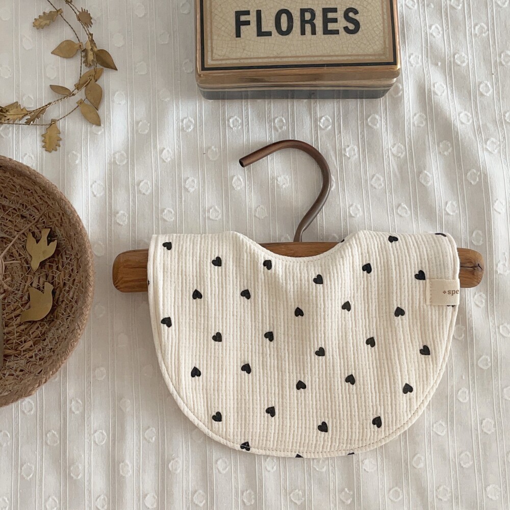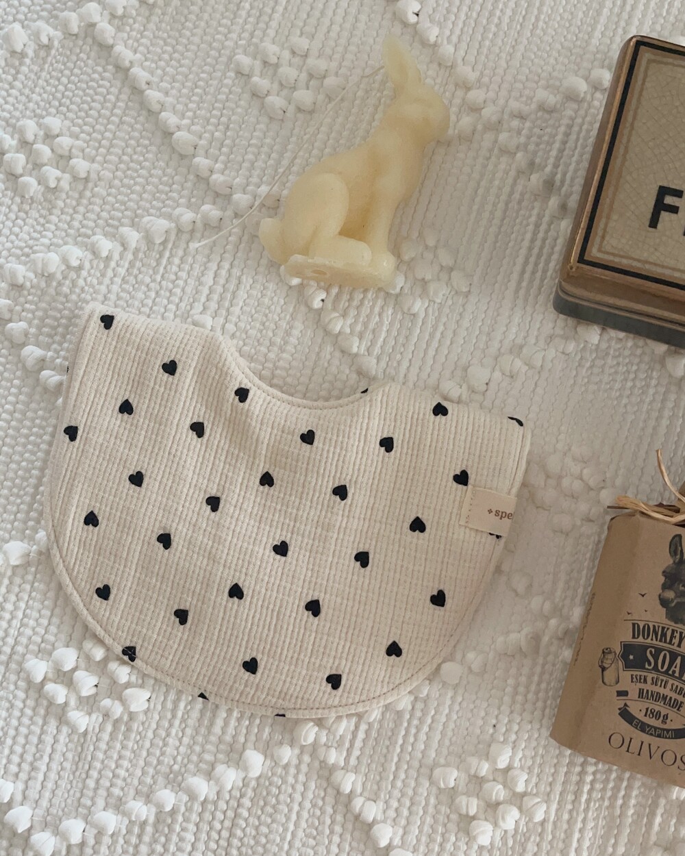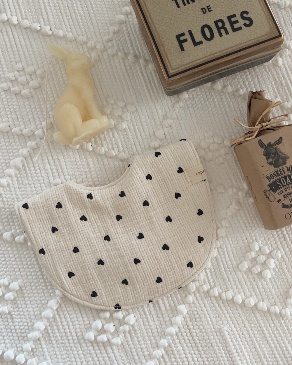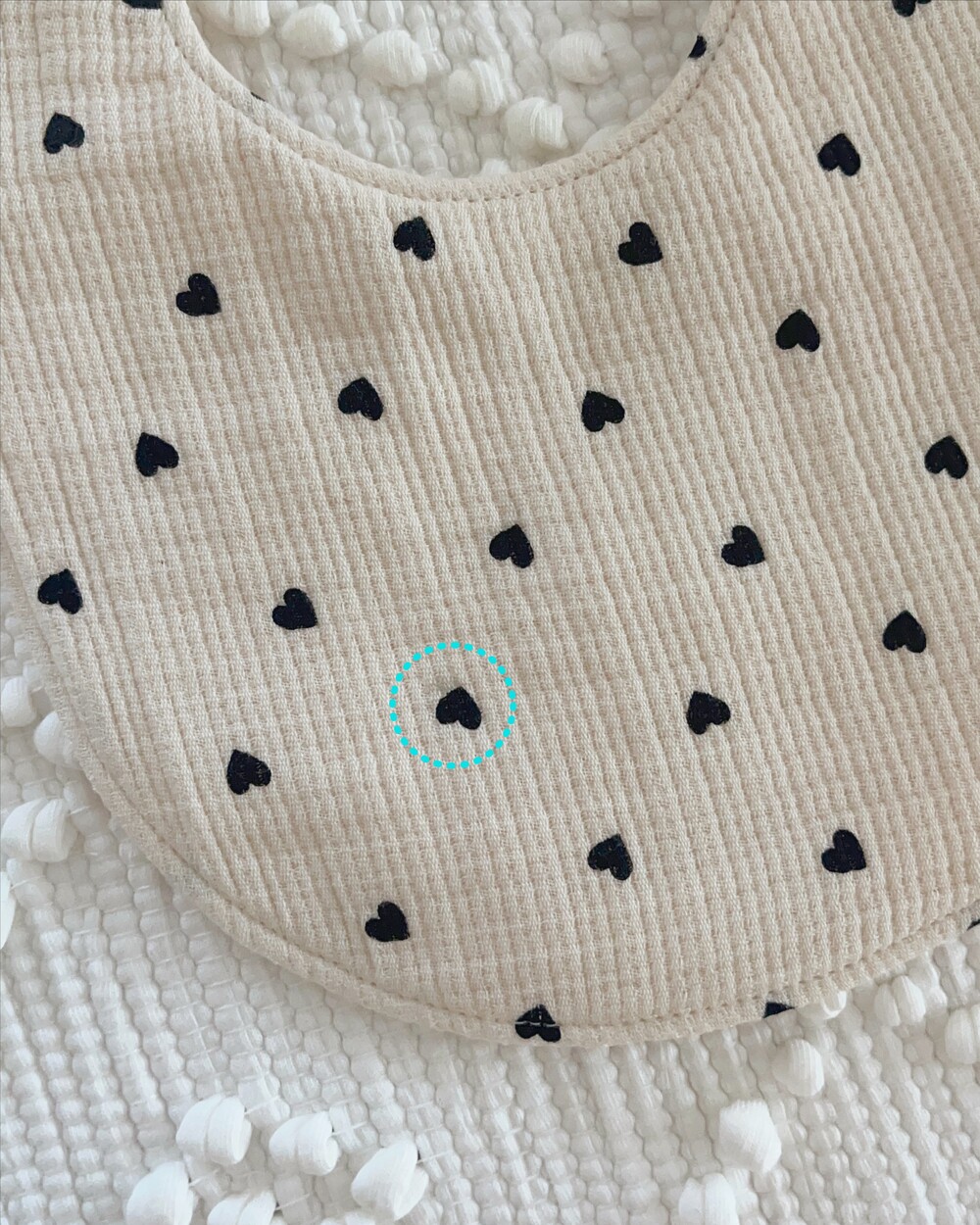 까망 하트 턱받이 앞면은 부드러운 이중거즈 골지 원단,