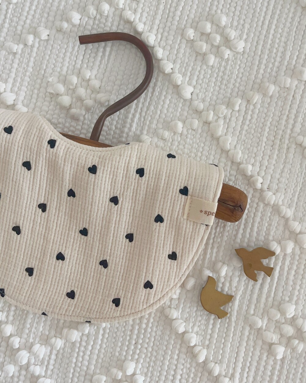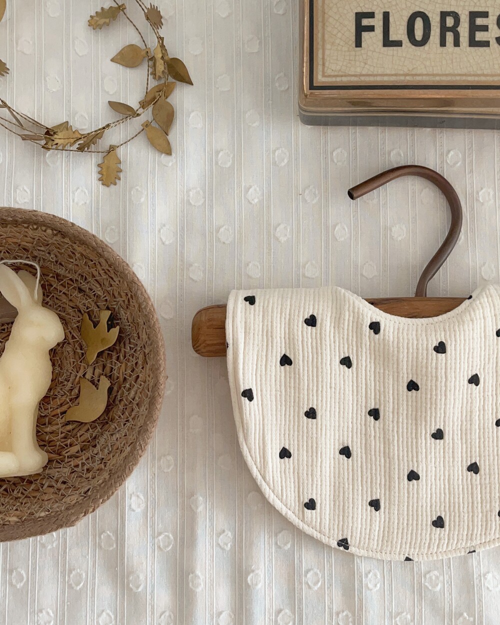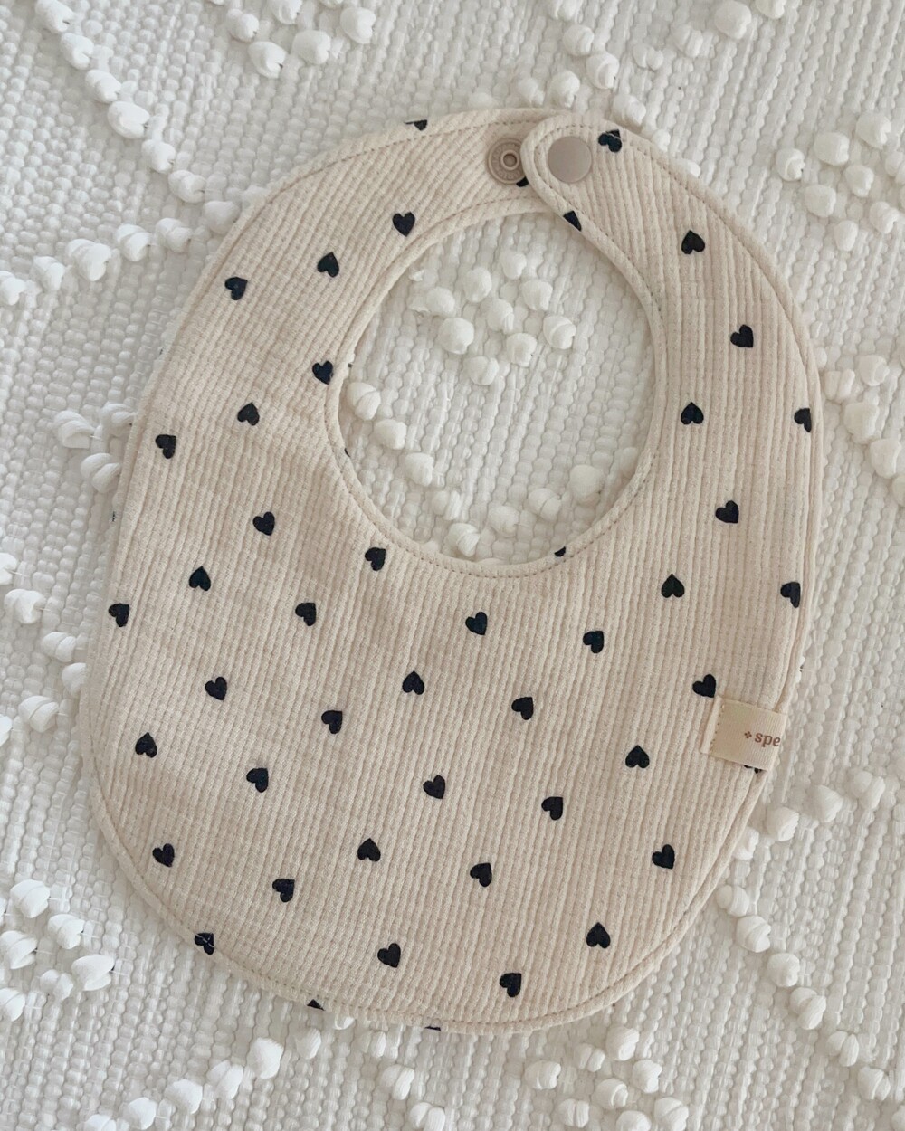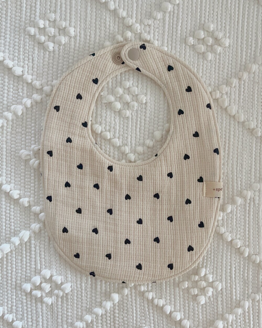 까망 하트 턱받이 앞면은 부드러운 이중거즈 골지 원단,
