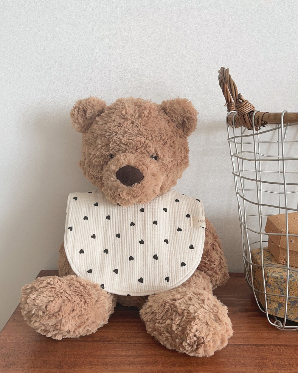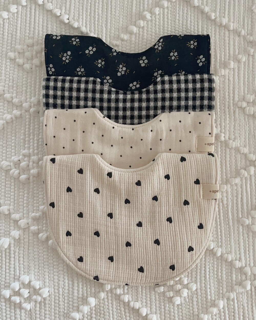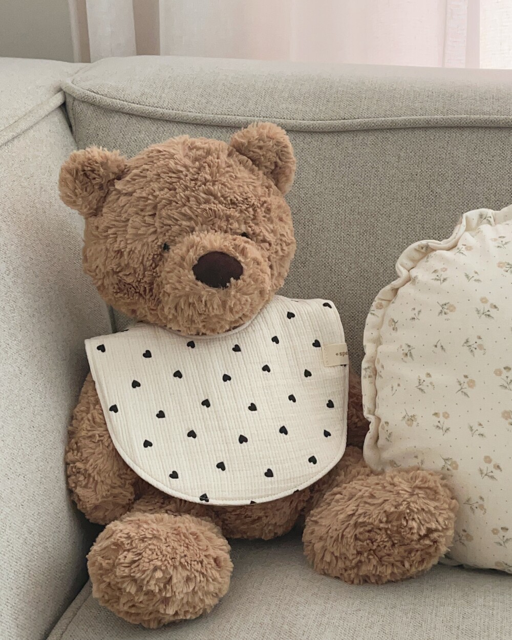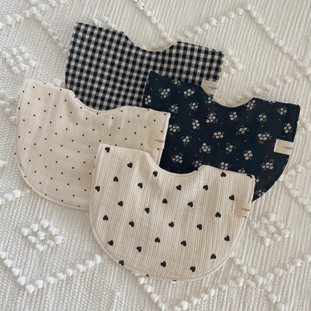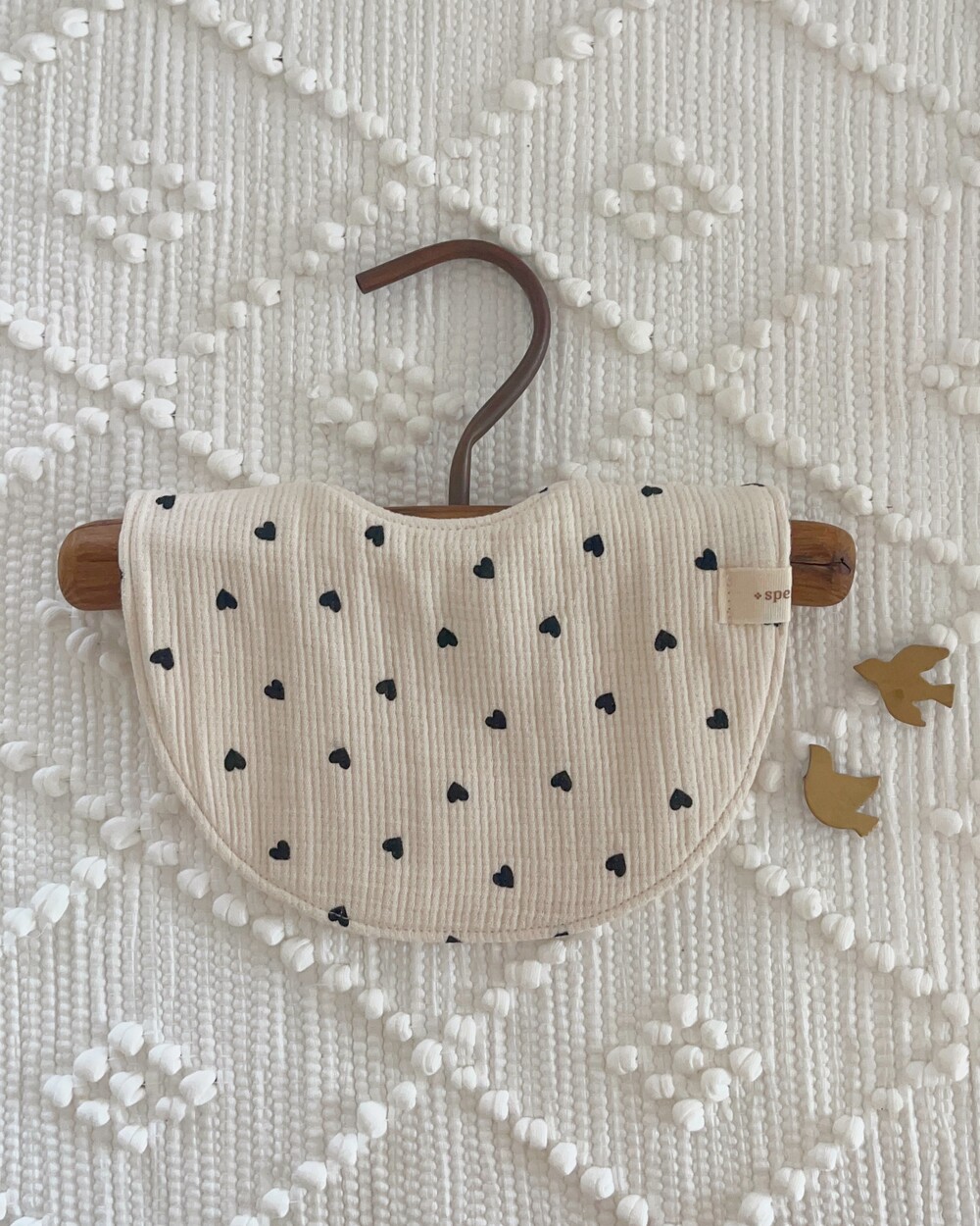 까망 하트 턱받이 앞면은 부드러운 이중거즈 골지 원단,