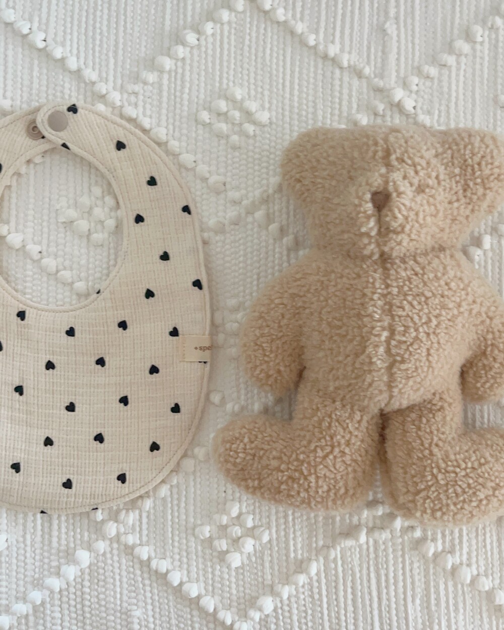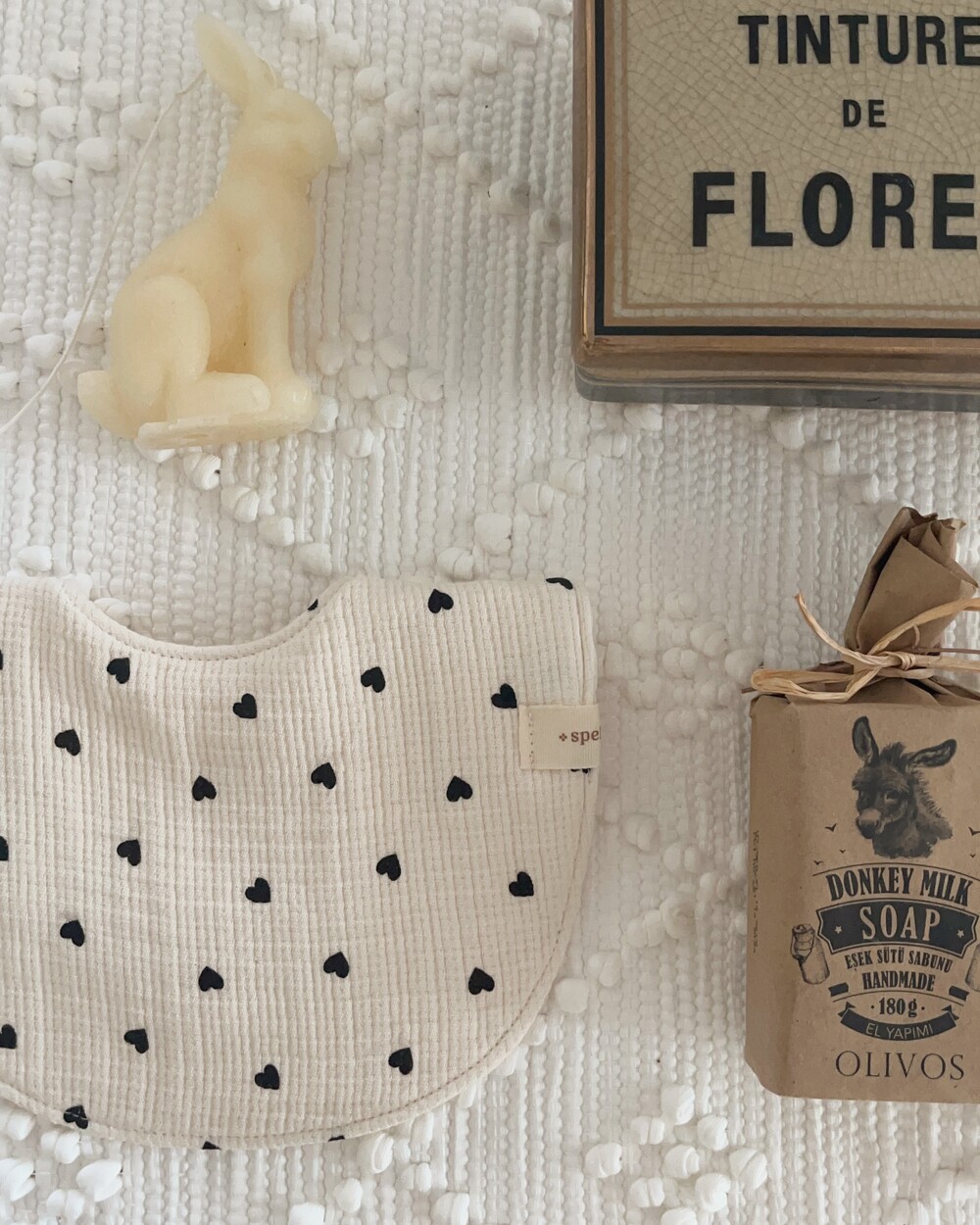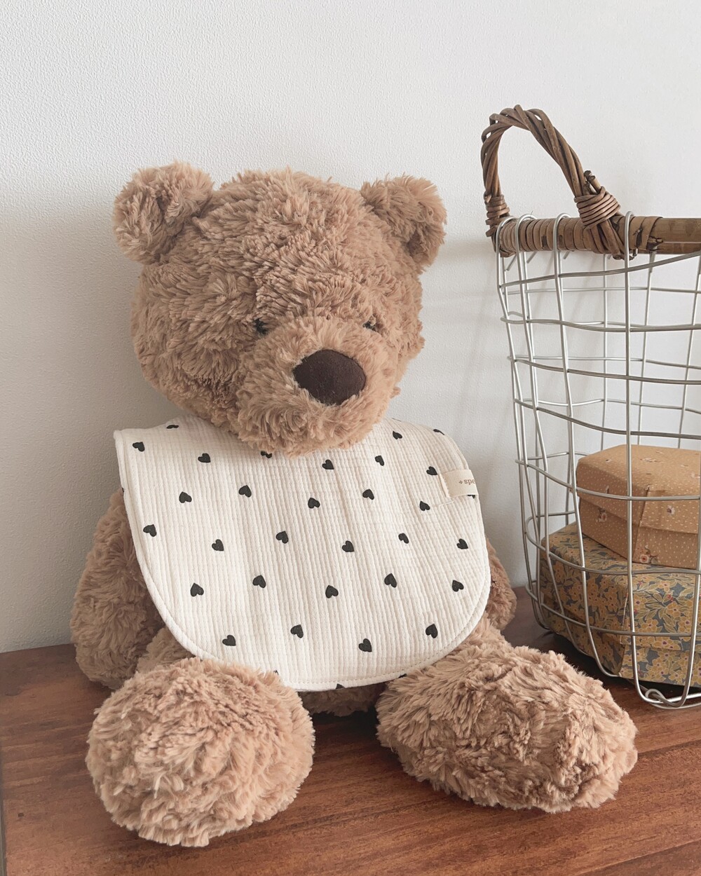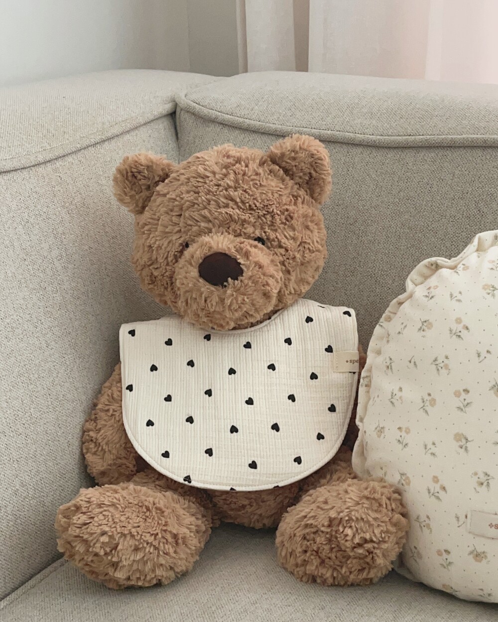 까망 하트 턱받이 앞면은 부드러운 이중거즈 골지 원단,