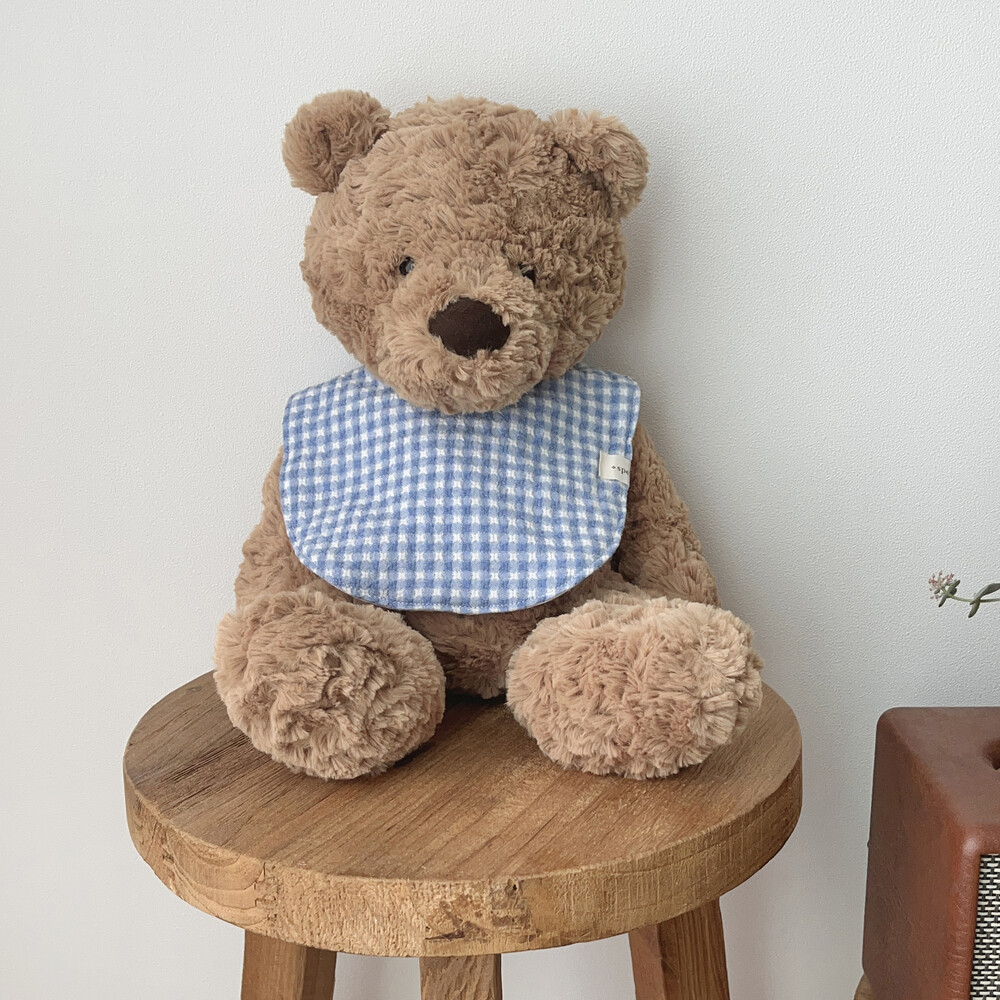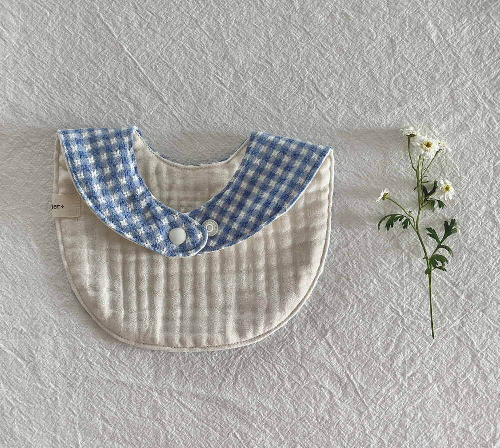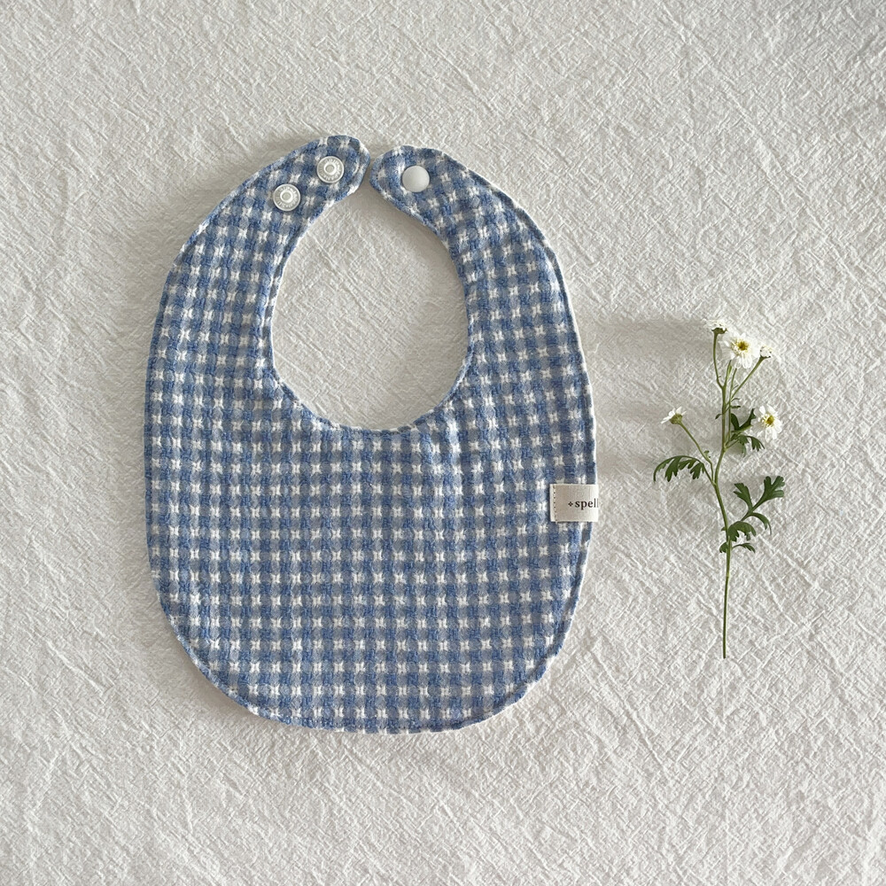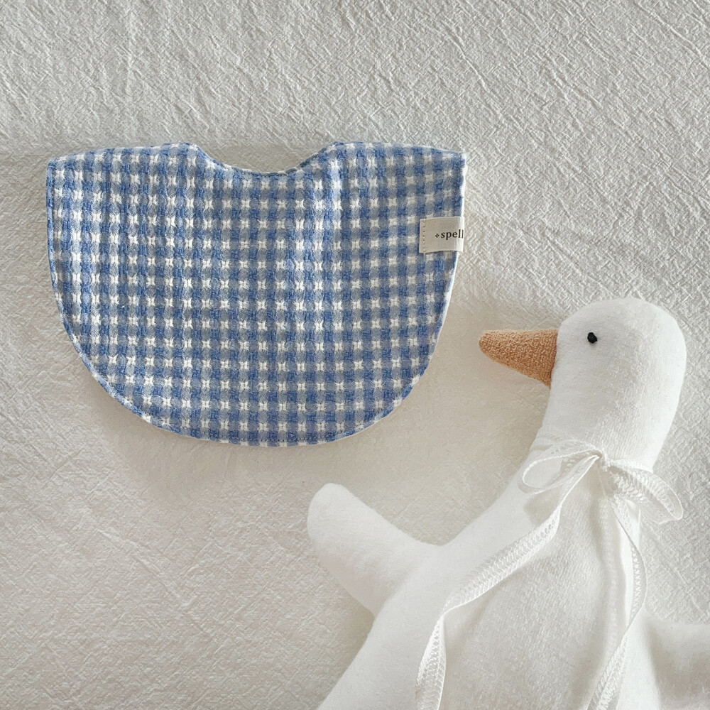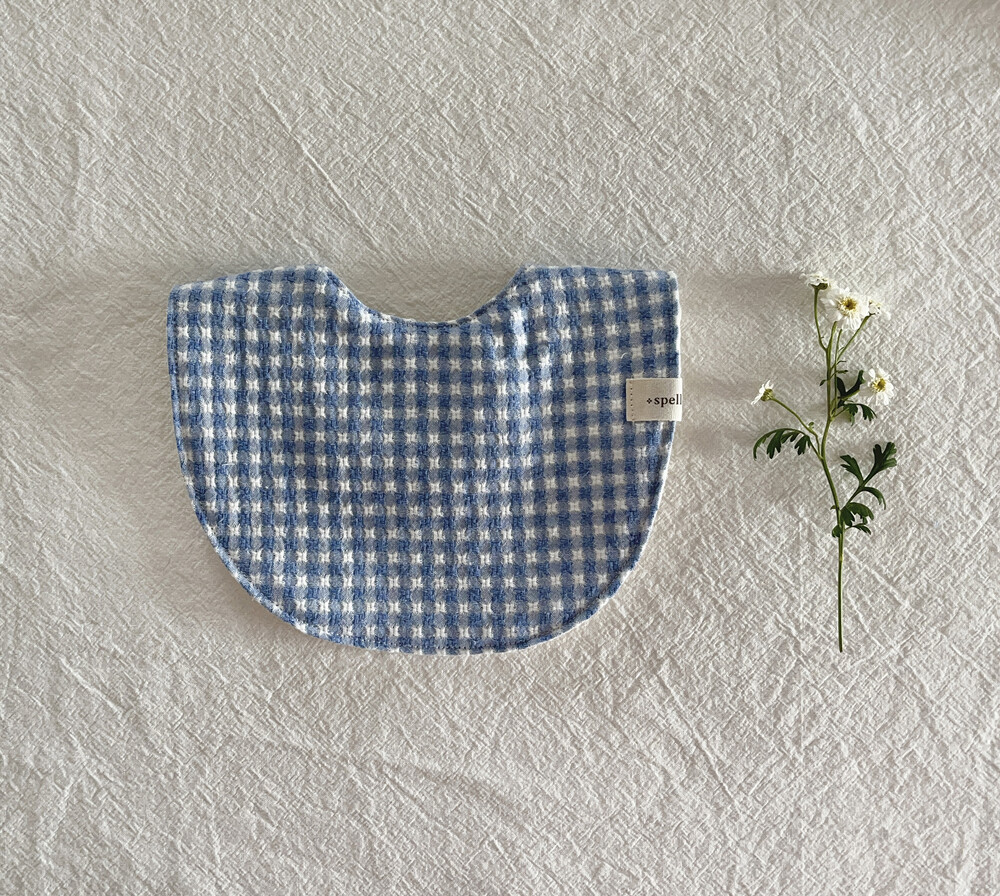부드러운 깅엄체크원단으로 제작한 블루 마가렛 턱받이예요:)