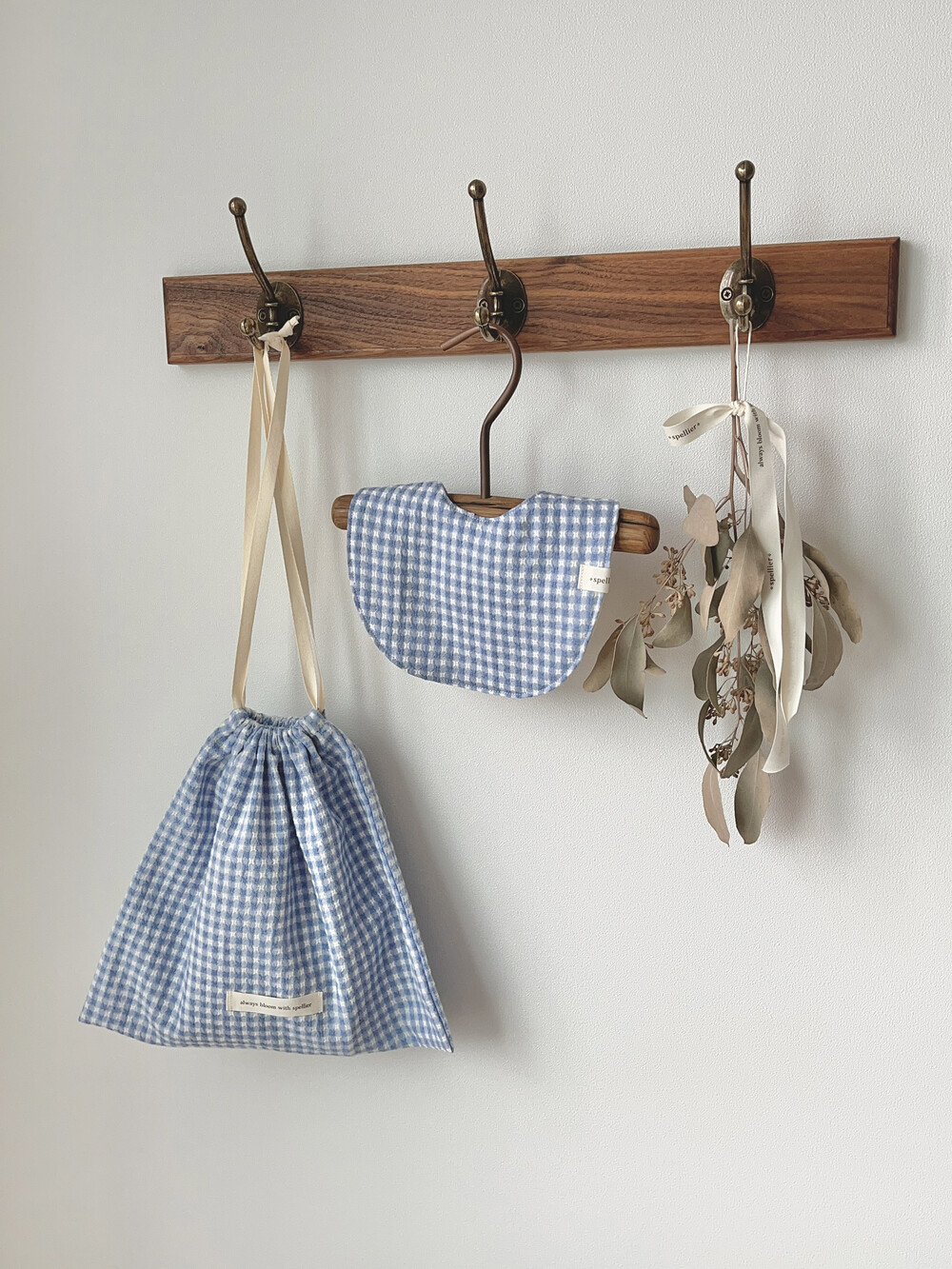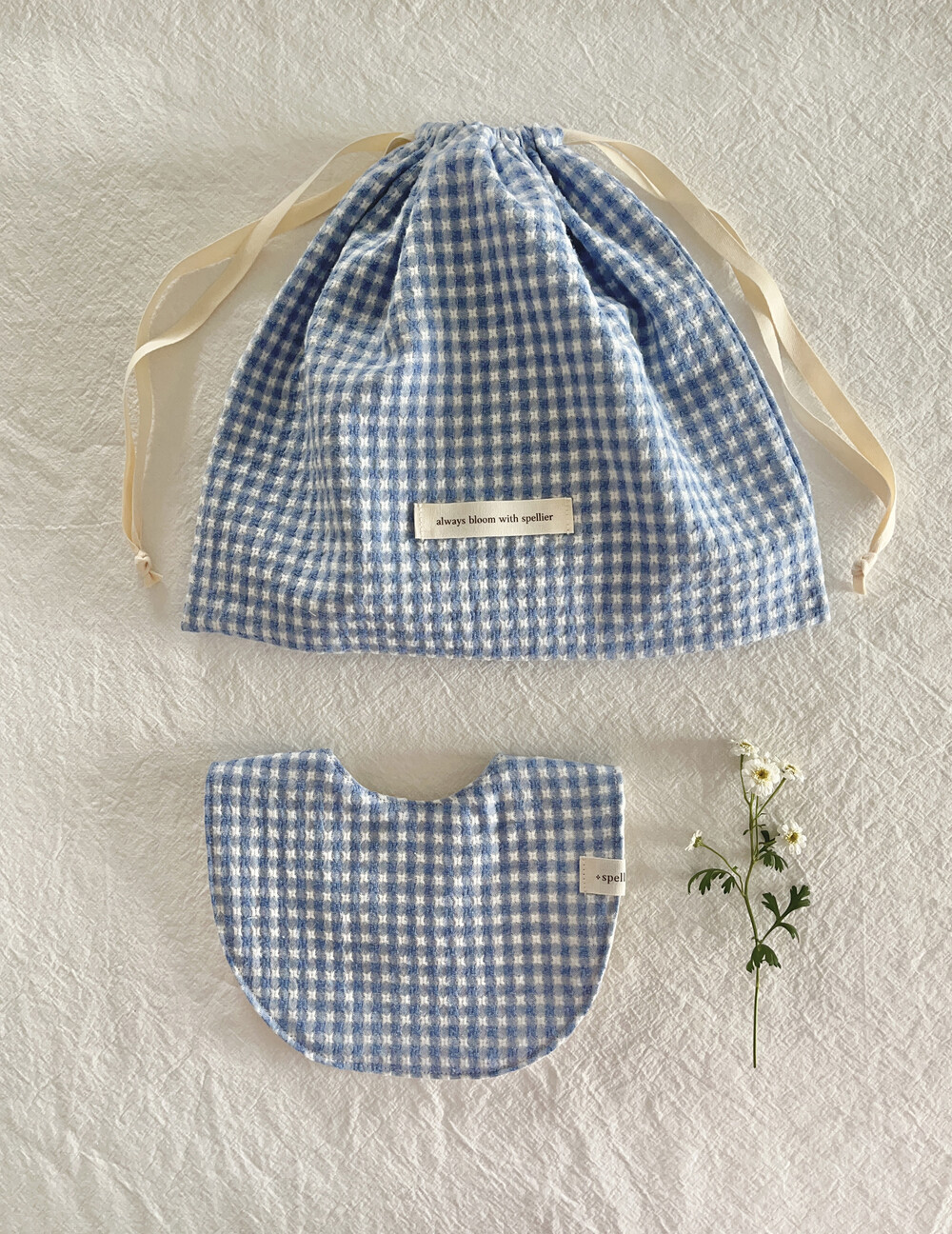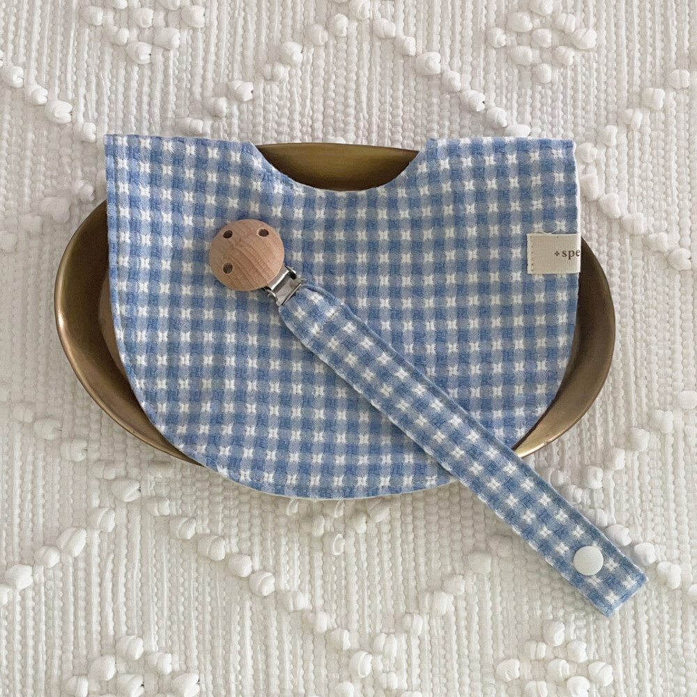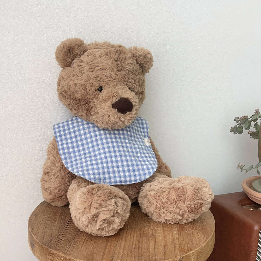 부드러운 깅엄체크원단으로 제작한 블루 마가렛 턱받이예요:)