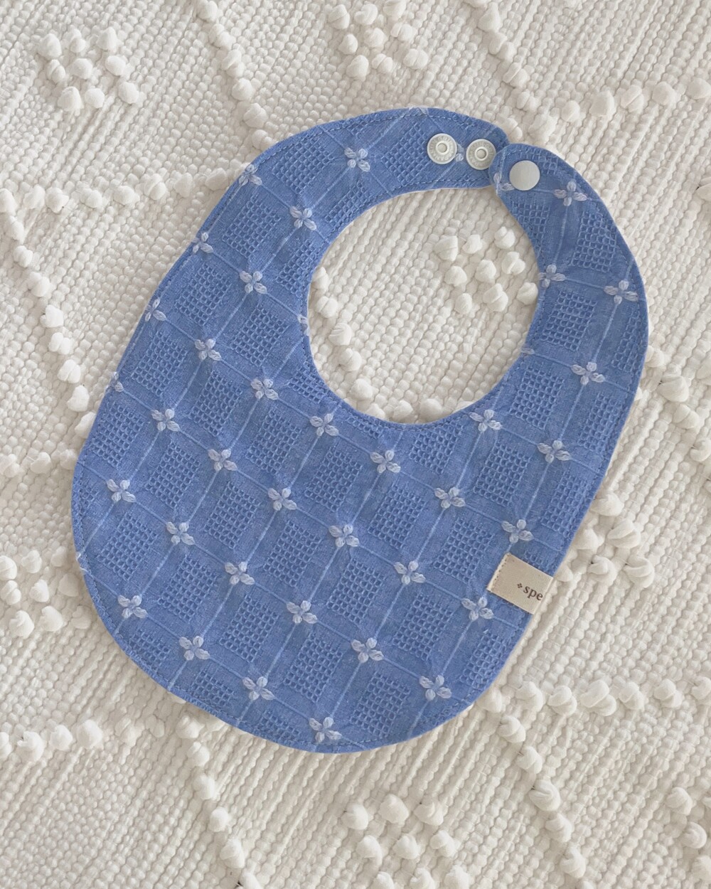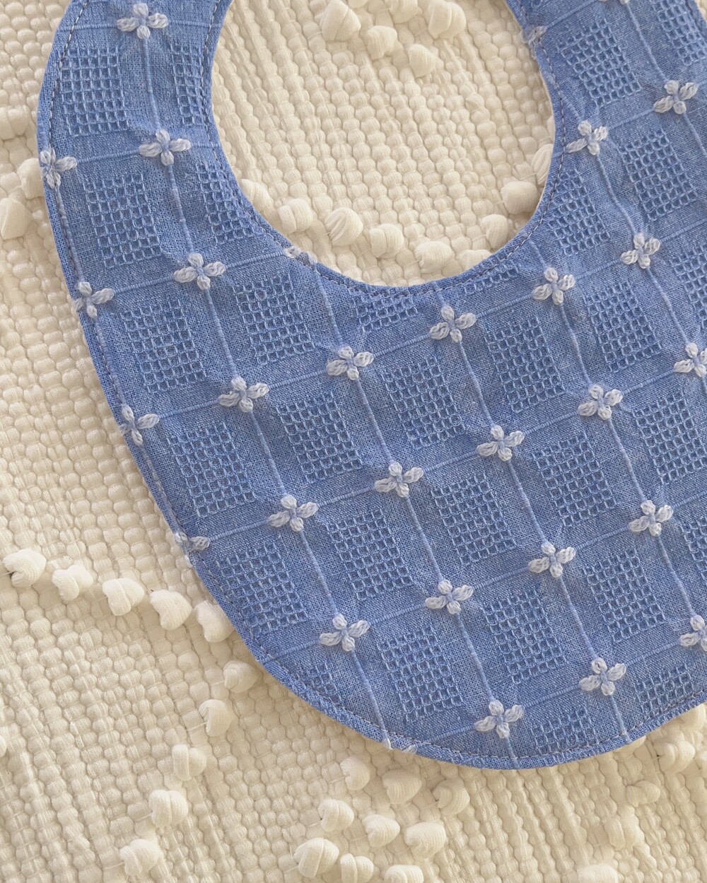 웨하스 자수 블루 턱받이는 앞면은 자수 면 100%,