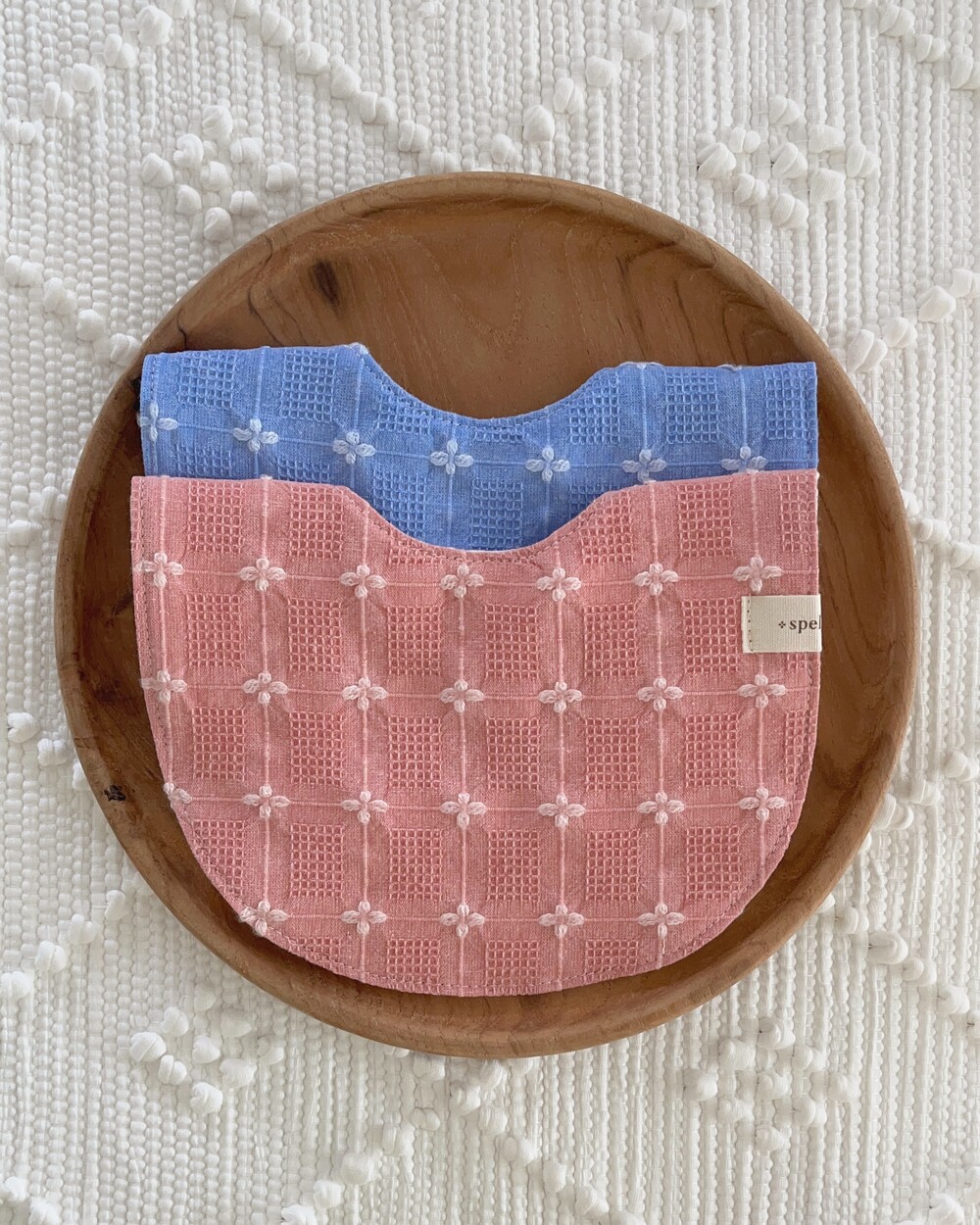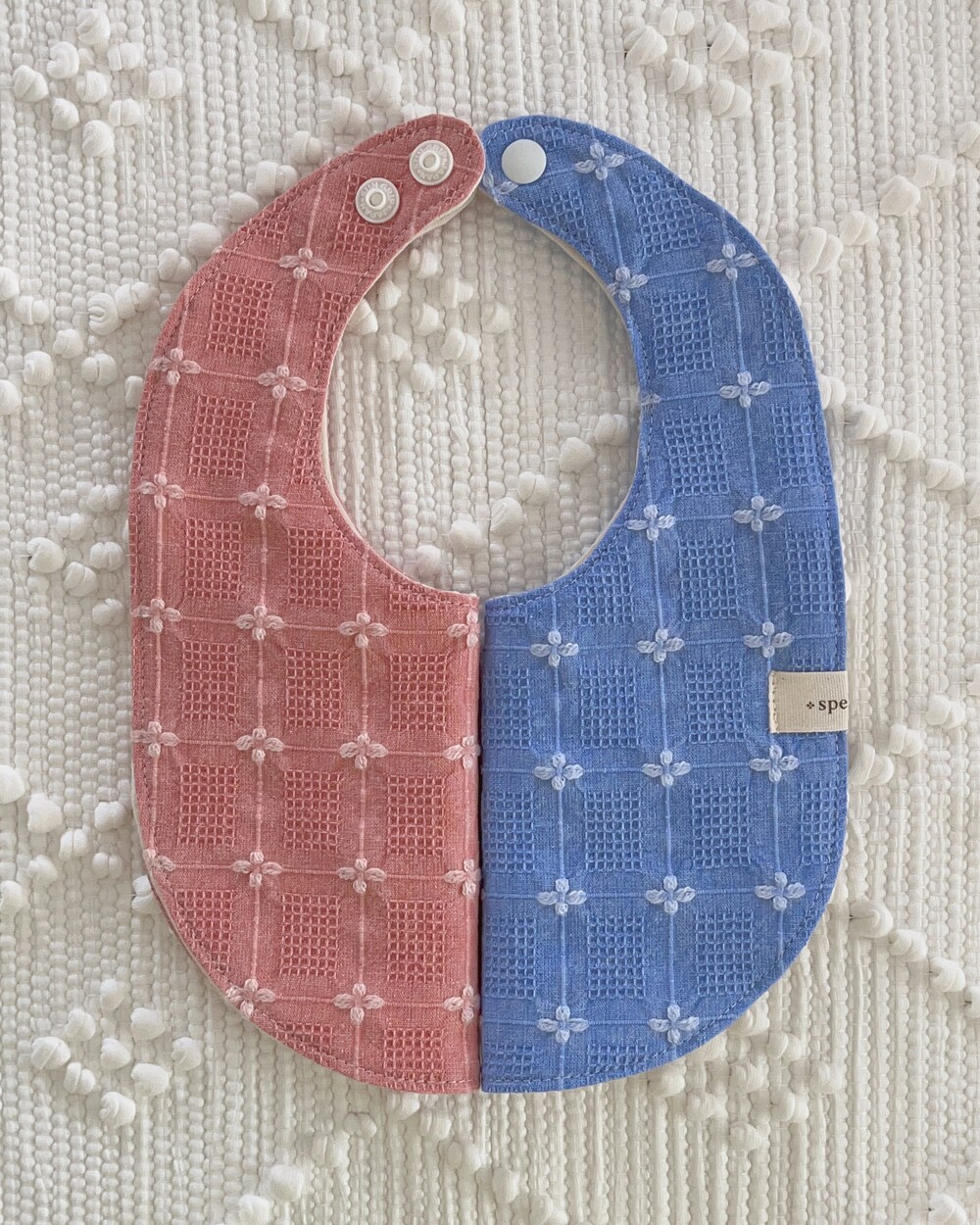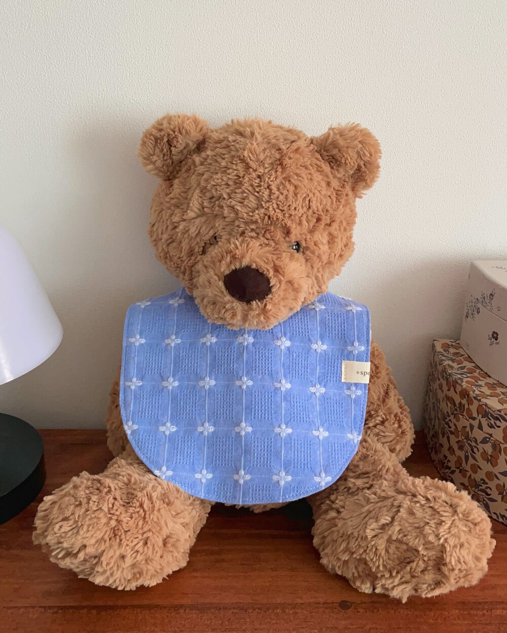 인스타에 사진 업데이트 이후 오픈 문의가 정말정말 많았던 웨하스 자수 턱받이 블루예요:)