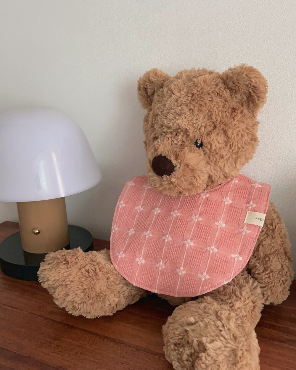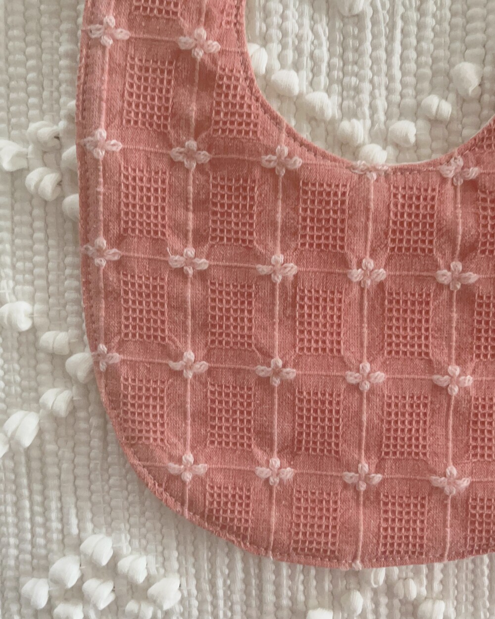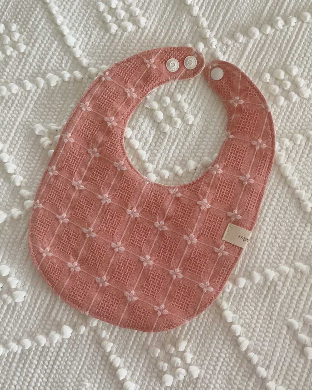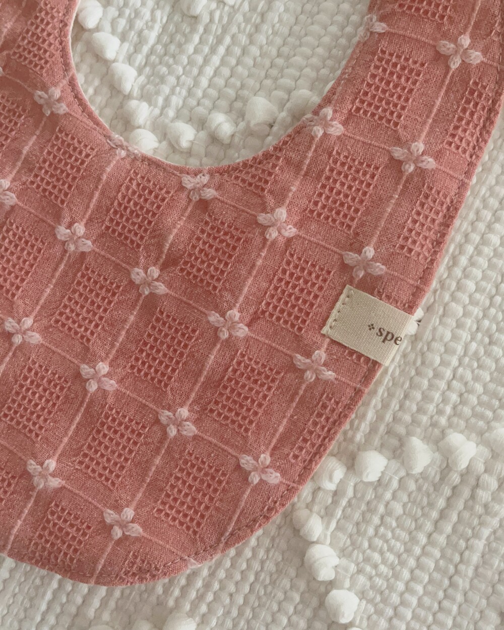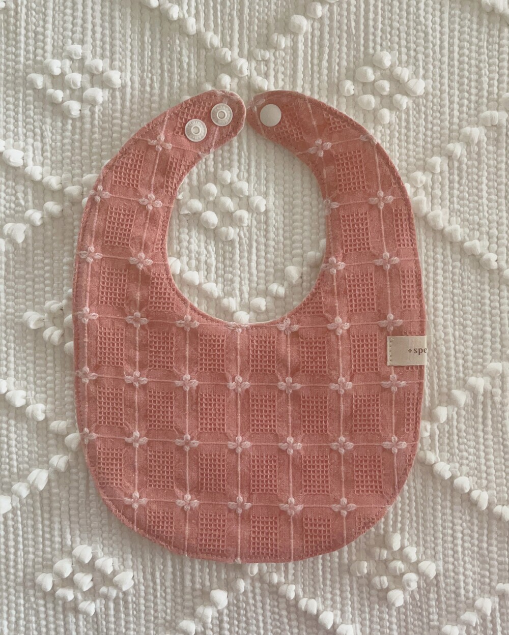 인스타에 사진 업데이트 이후 오픈 문의가 정말정말 많았던 웨하스 자수 턱받이 핑크예요:)