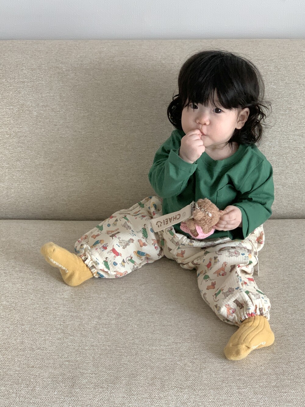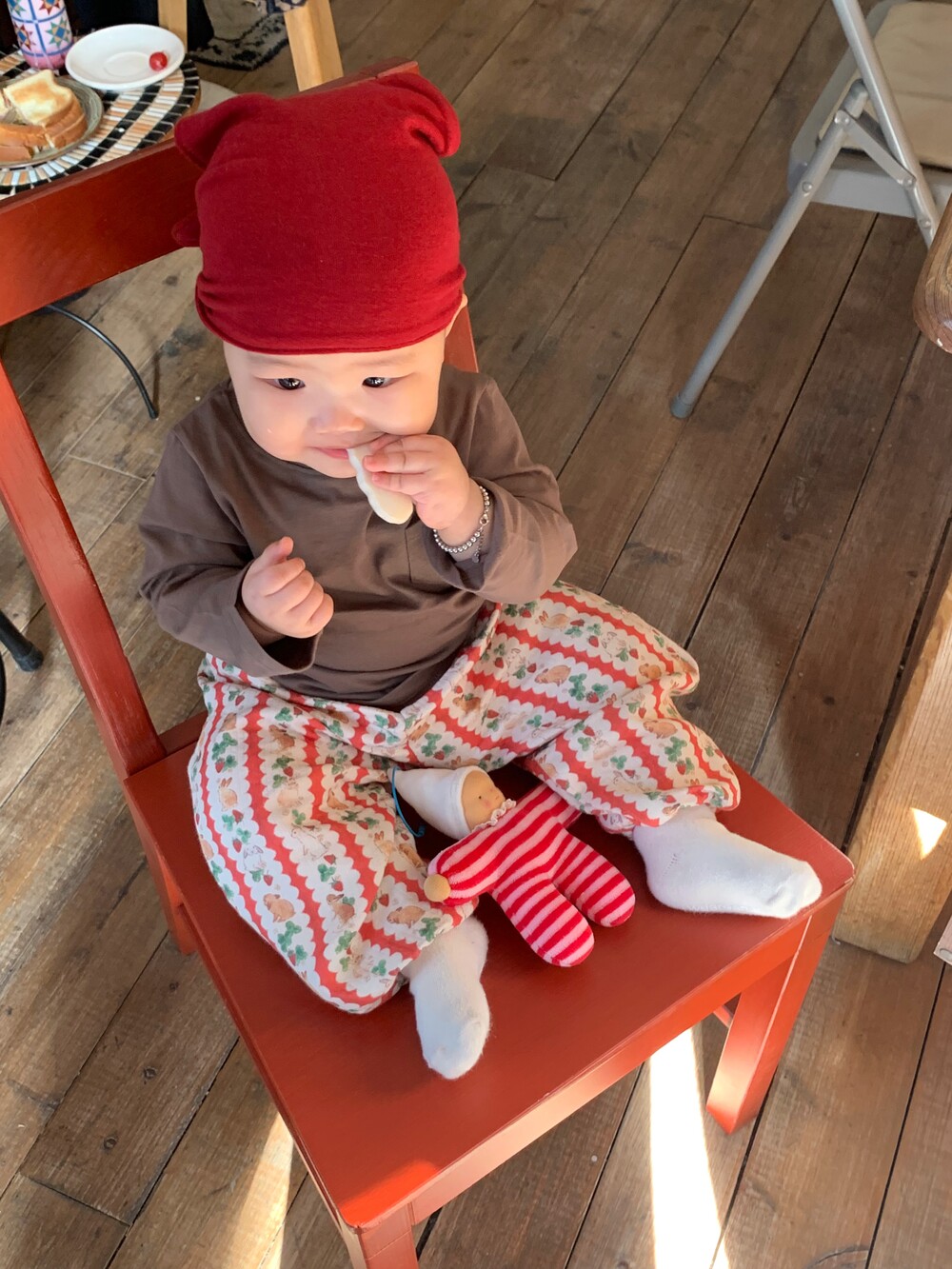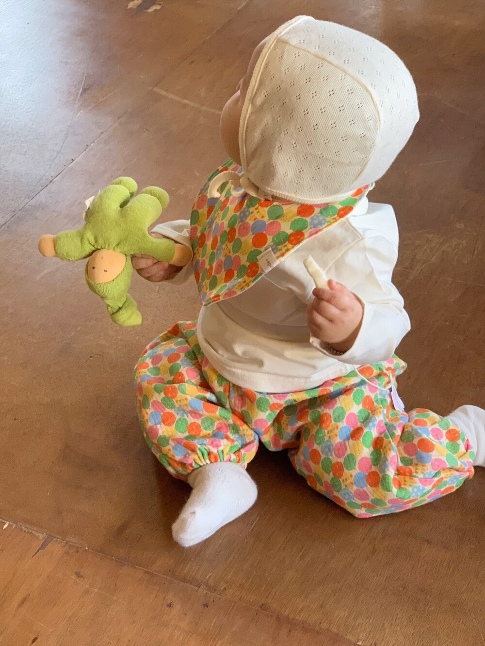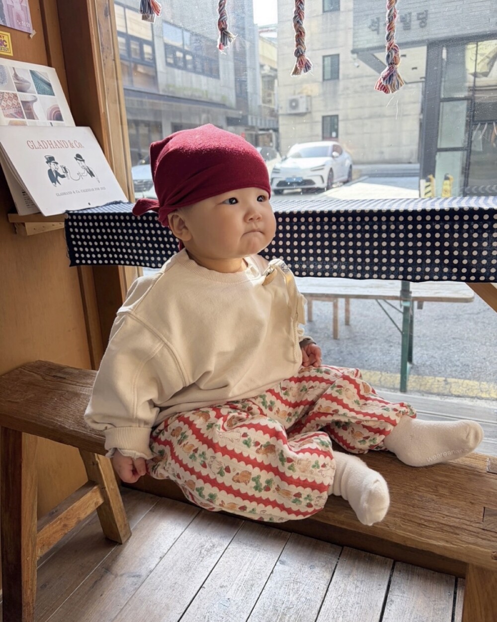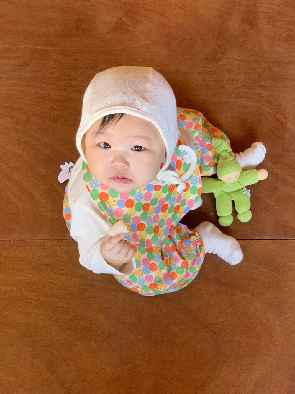 턱받이는 채도가 높고, 고쟁이는 차분한 색감입니다:)