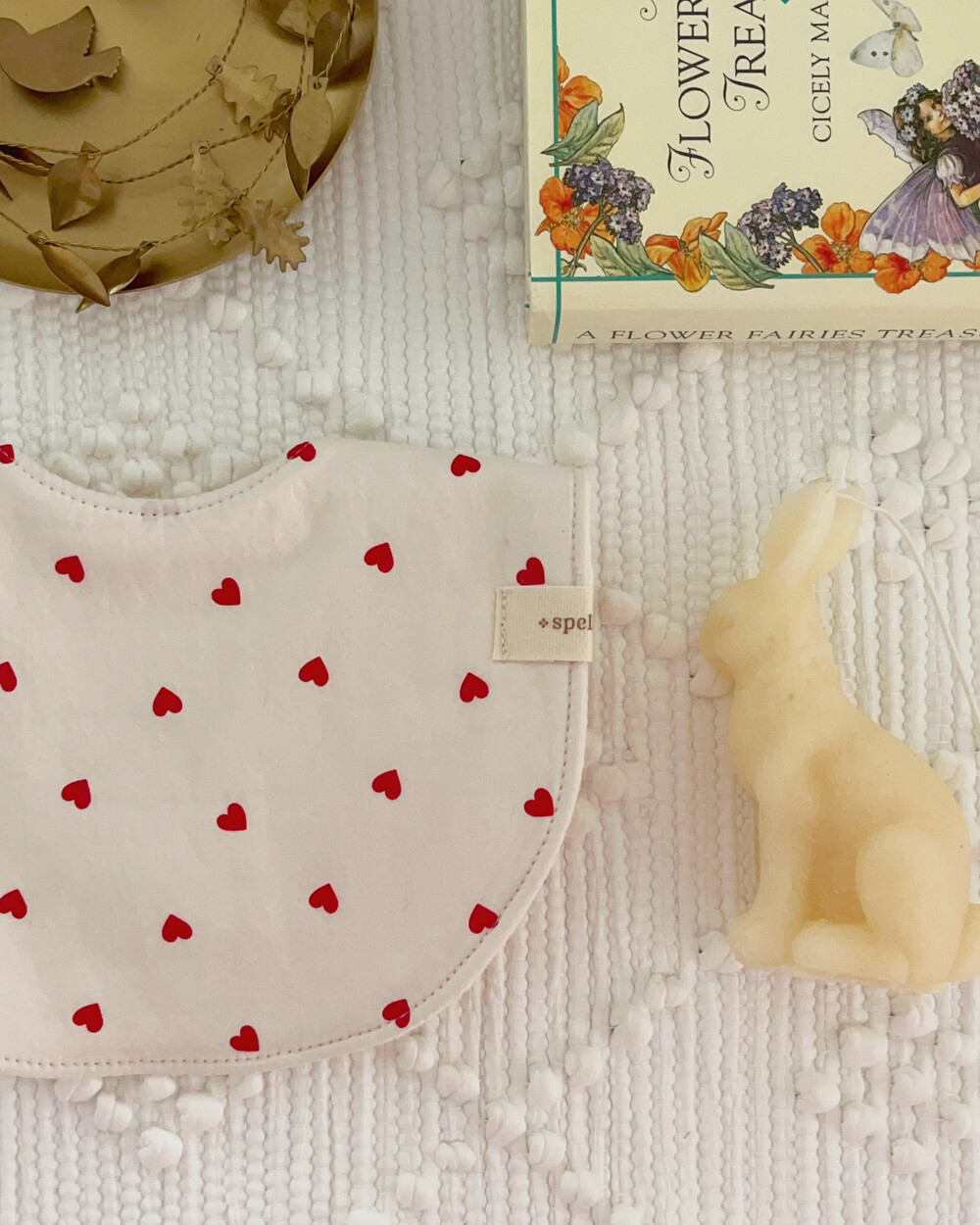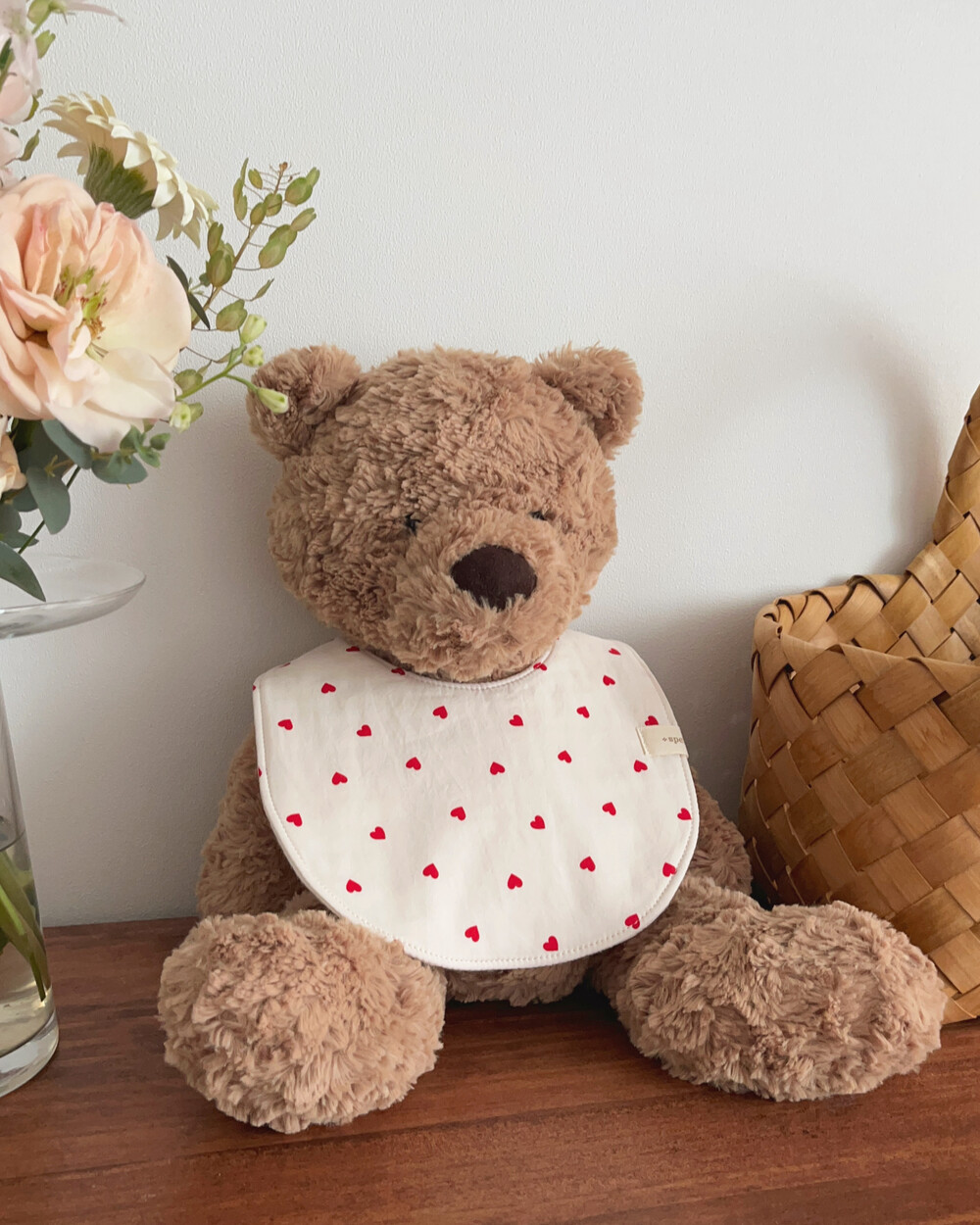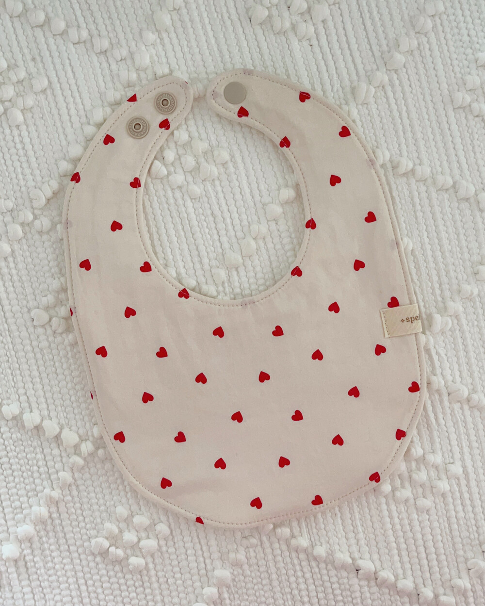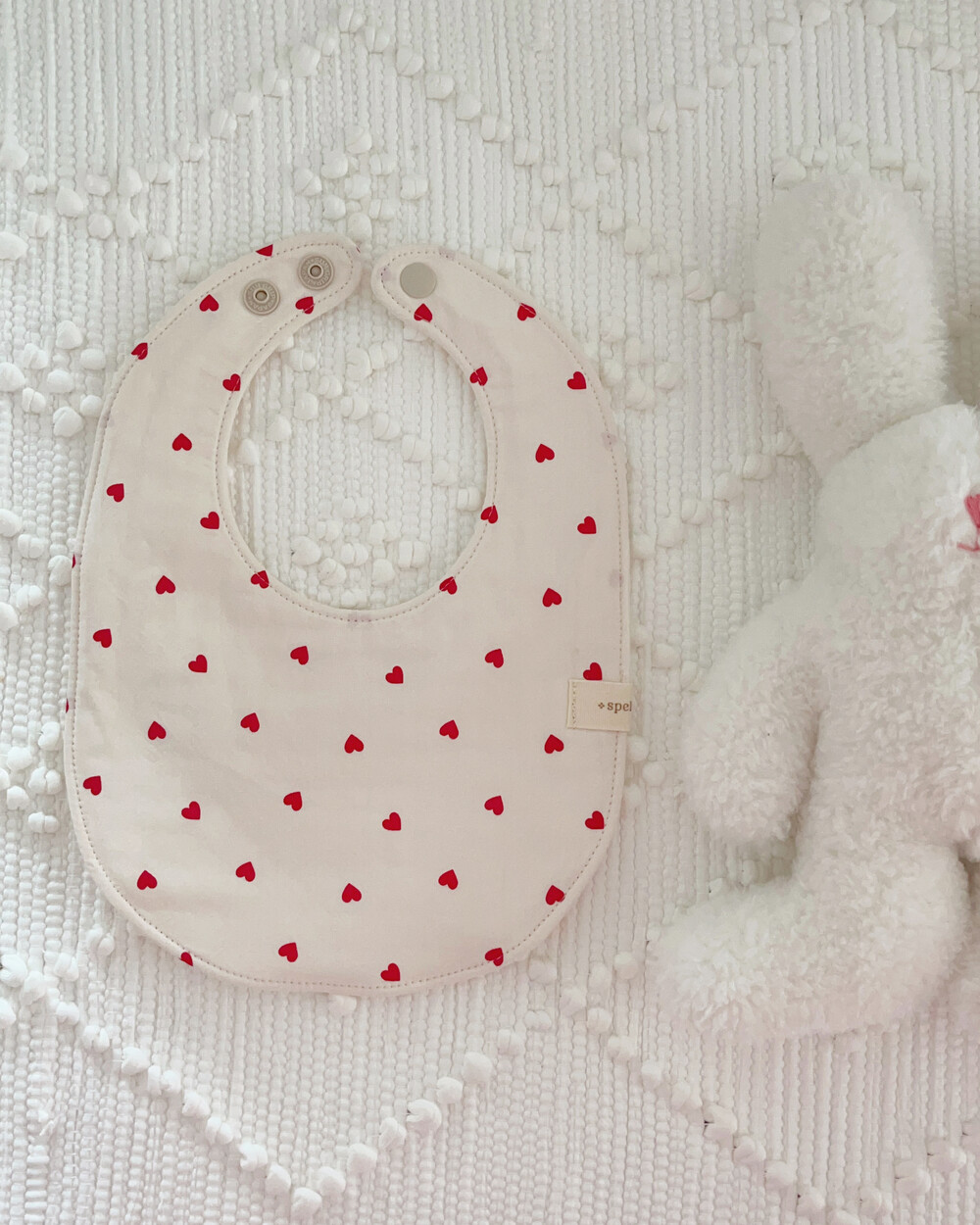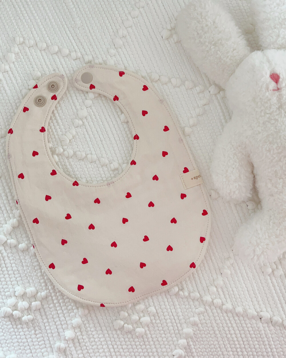 러브 베이비 턱받이는 매끈한 면 소재로 제작되었어요.