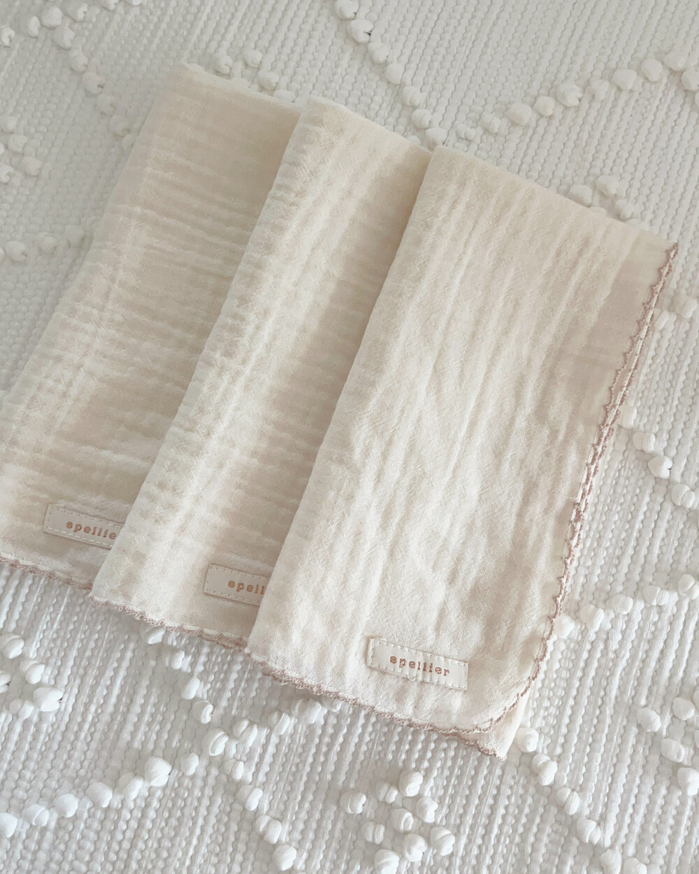 베이지색 핀코트 마감으로 은은하고 귀여운 손수건을 제작했답니다.