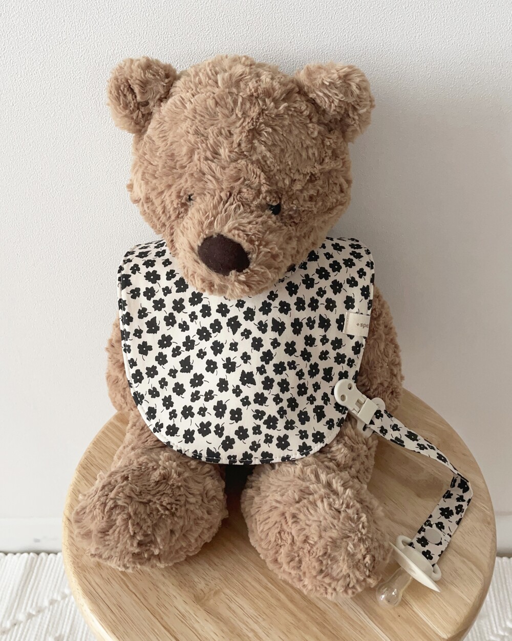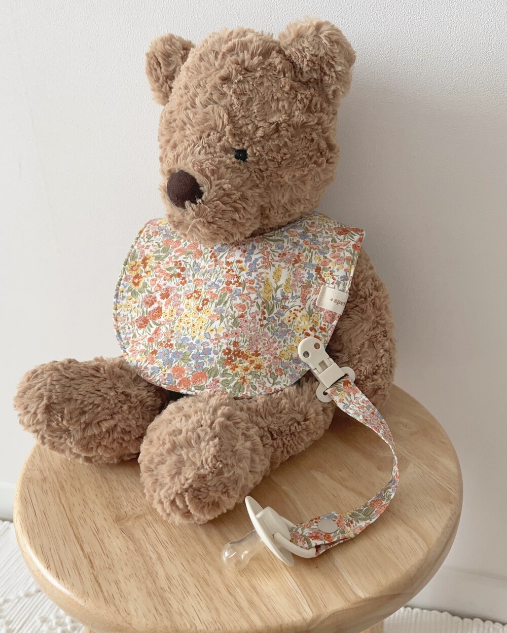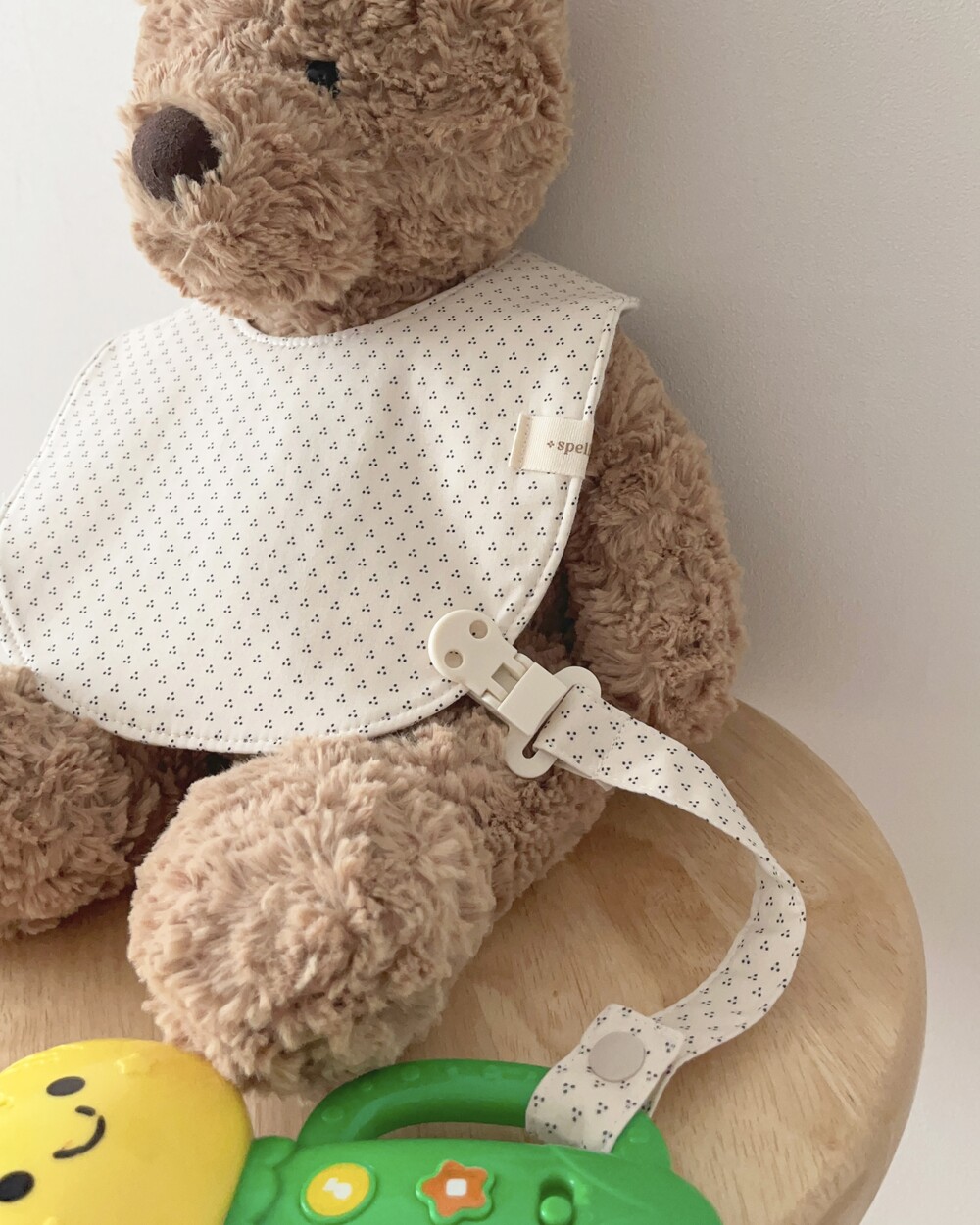 턱받이에 쓰이는 원단들이 모두 부드러운 소재라