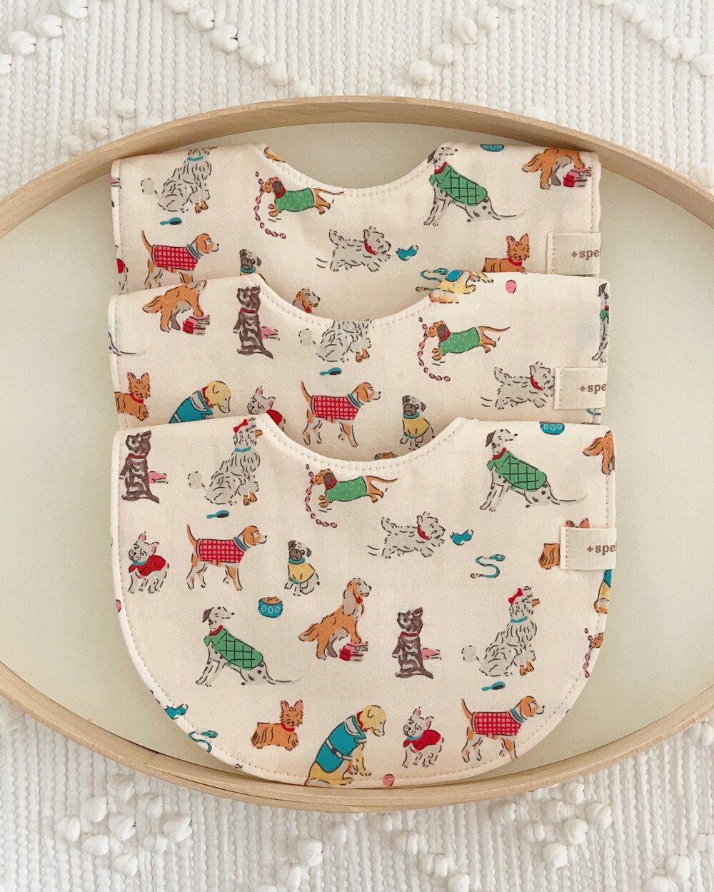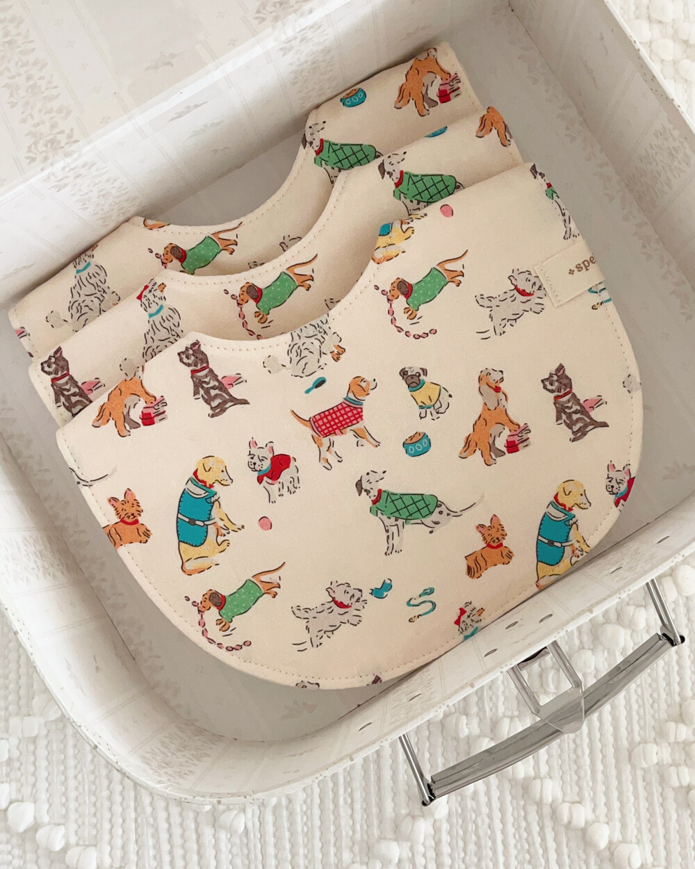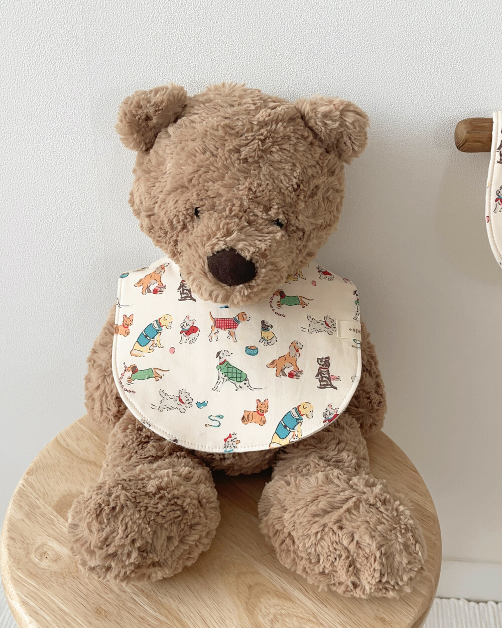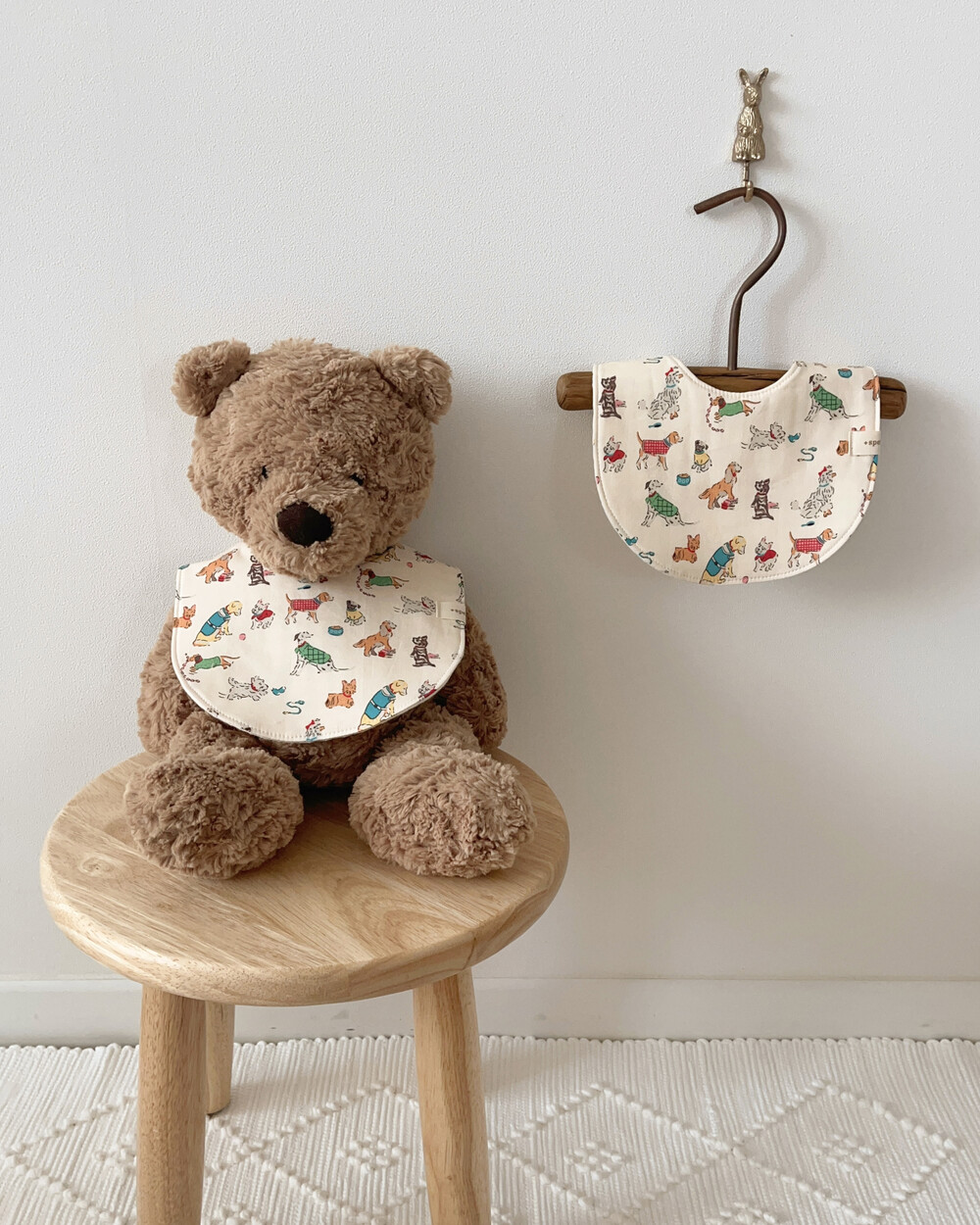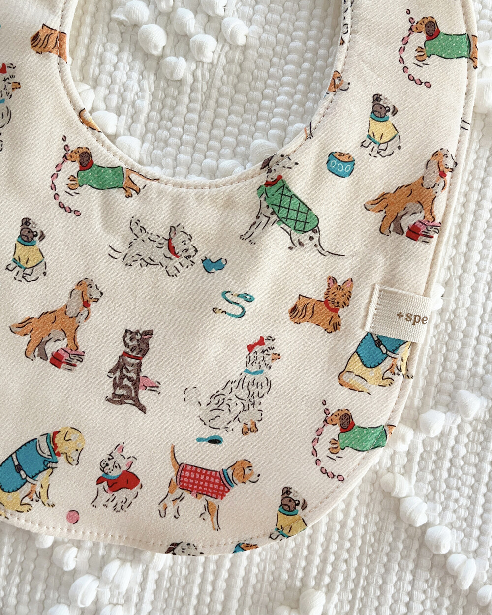 스펠리에에서 처음 보여드리는 강아지 패턴 턱받이예요:)