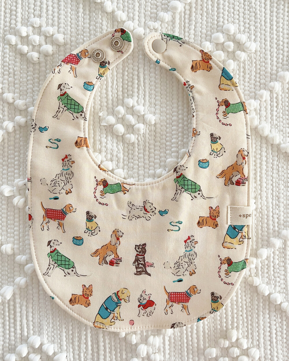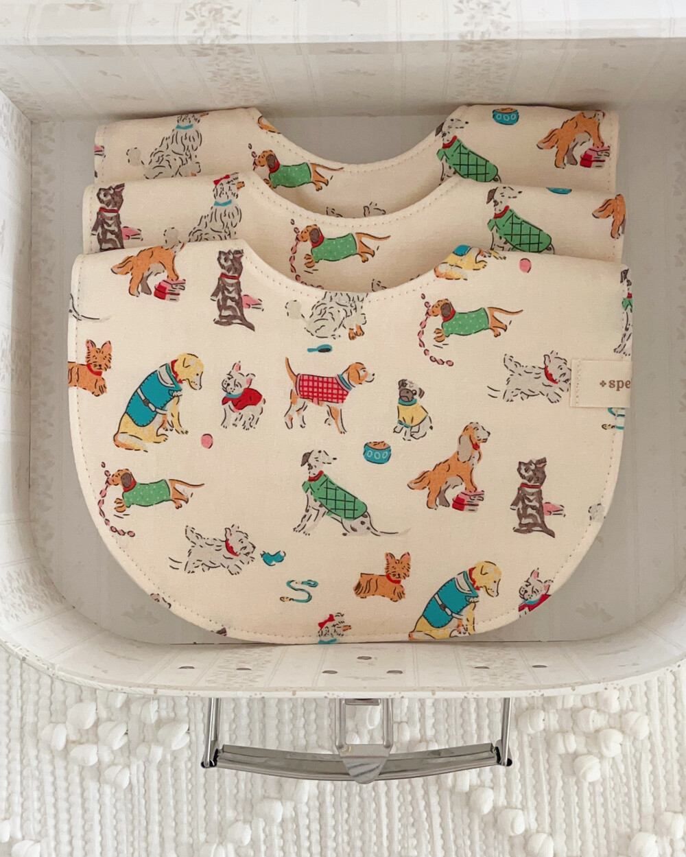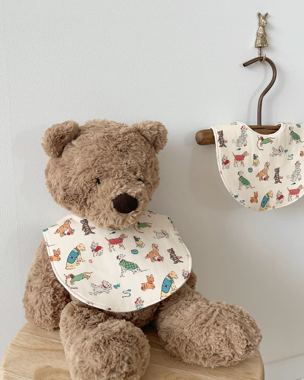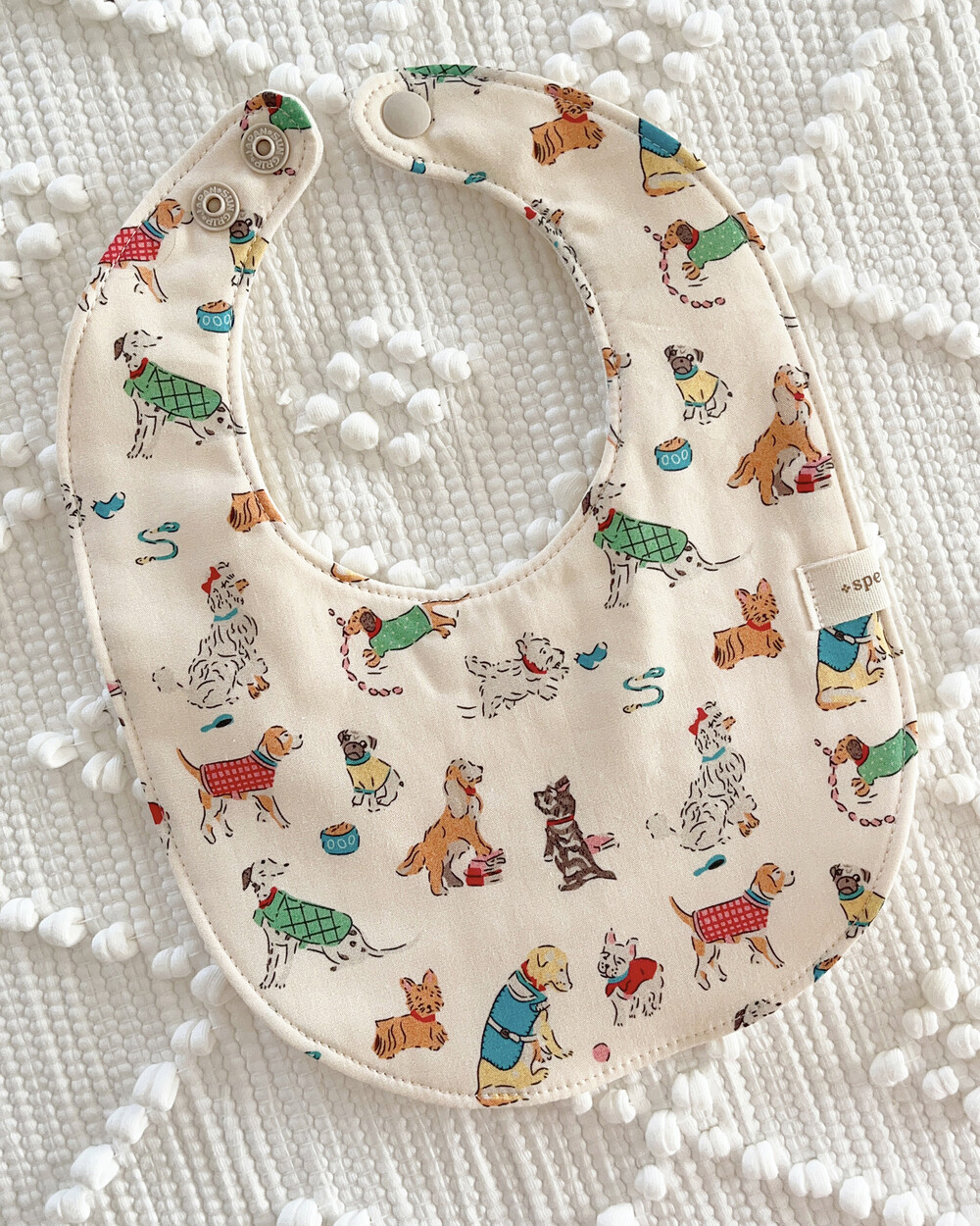 스펠리에에서 처음 보여드리는 강아지 패턴 턱받이예요:)