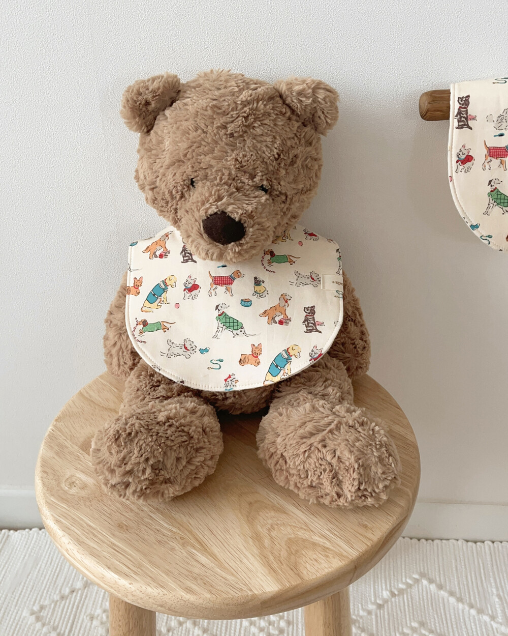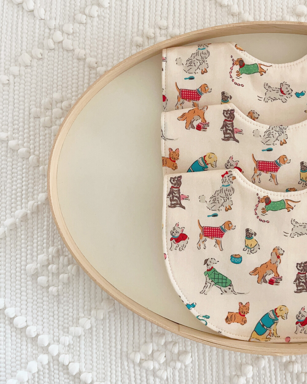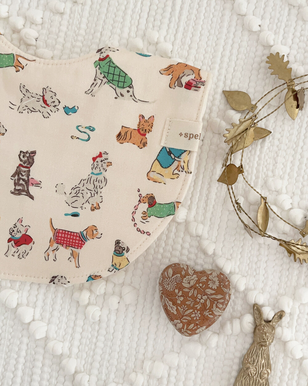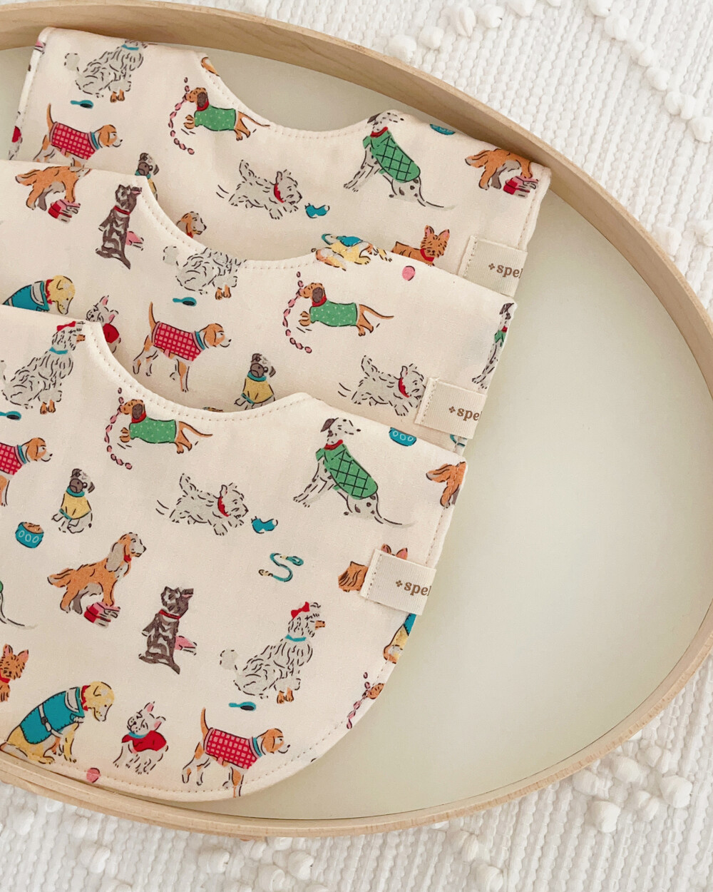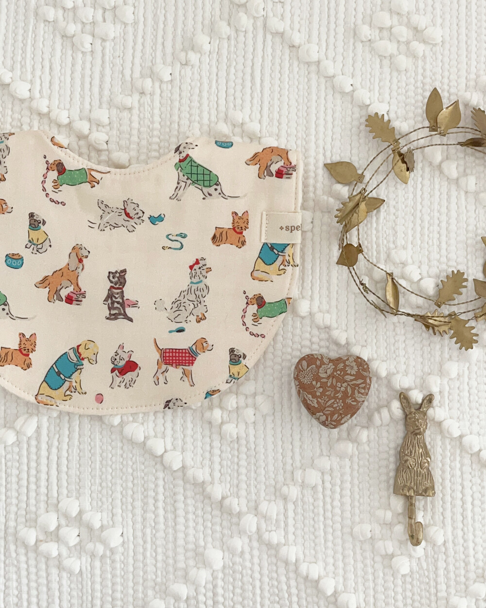 스펠리에에서 처음 보여드리는 강아지 패턴 턱받이예요:)